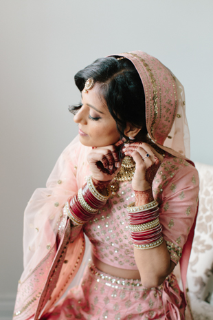 The couple’s closest family and friend gathered together in an elegant ballroom early morning on that day. The wedding started with a Sikh ceremony to pay tribute to Milan’s family roots. Facing the room’s vintage fireplace, the ceremony was overflowing with a soft, magical morning light. I really loved the toned down floral centrepieces surrounding the ceremony site that added a welcome touch of modern elegance.