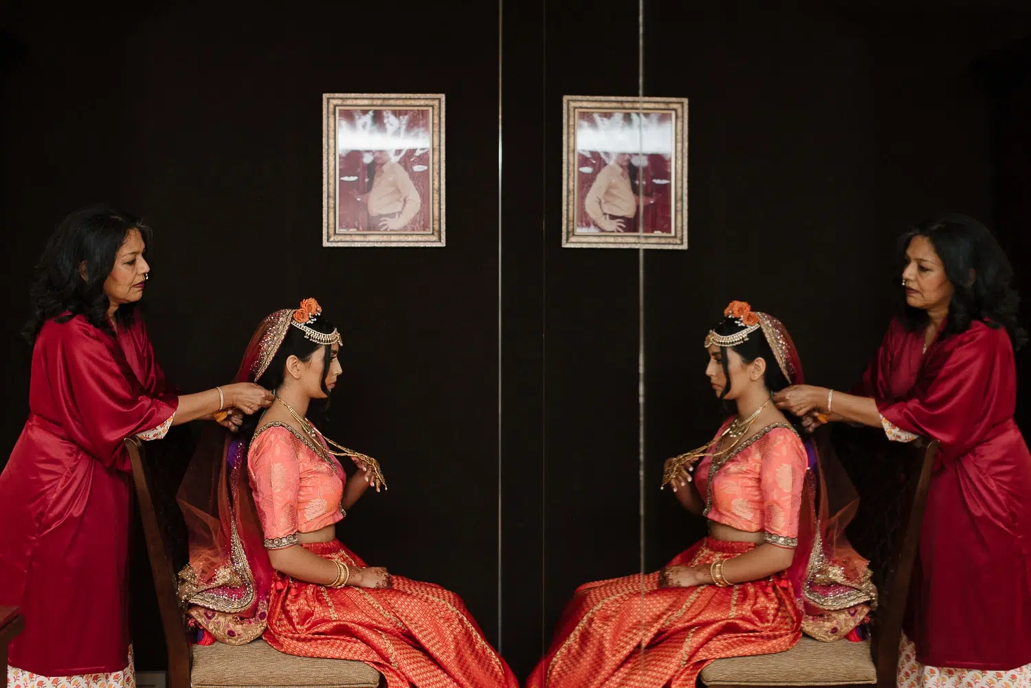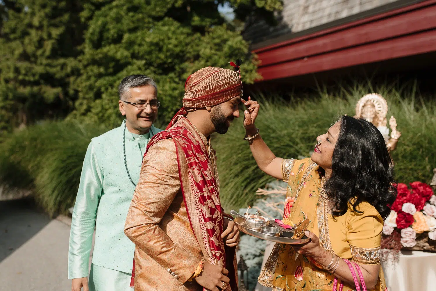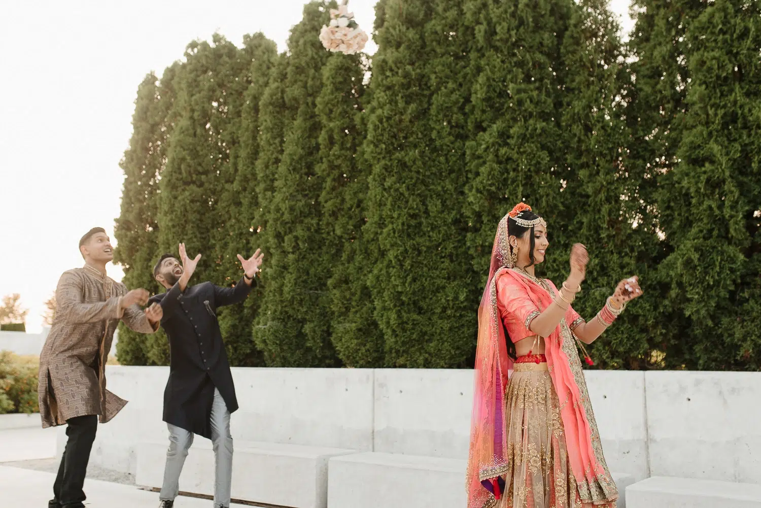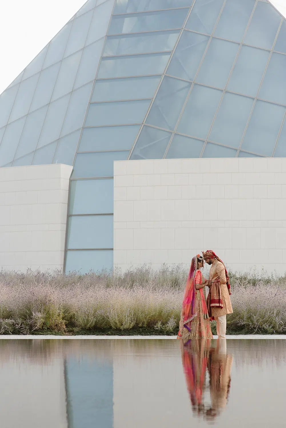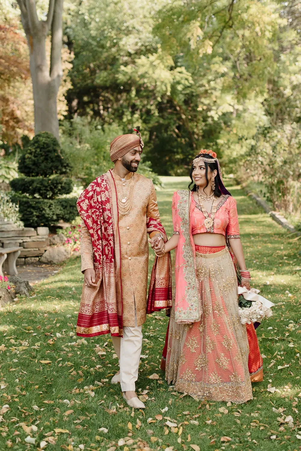 Our main goal was to capture every raw emotion and bright colour of Shriya and Alex’s traditional Hindu wedding ceremony. The bride’s tears of joy and the family’s jubilant celebration made our job a joy to capture such lively emotions. However, it wasn’t just the emotions that were vibrant – the fall colours of the Aga Khan Museum provided a stunning backdrop for the couple’s creative portrait session. As a result, it seemed like even Mother Nature was swept up in the romance! The warm hues of orange, red, and gold created a dreamy atmosphere. As photographers, we strive to capture the essence of every moment, and this ceremony was no exception. In addition to the details of Shriya’s stunning attire, the intricate designs of the Henna was a masterpiece. For this reason, every element on the wedding day felt like a work of art.