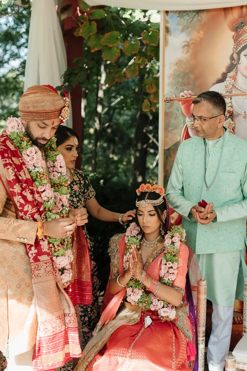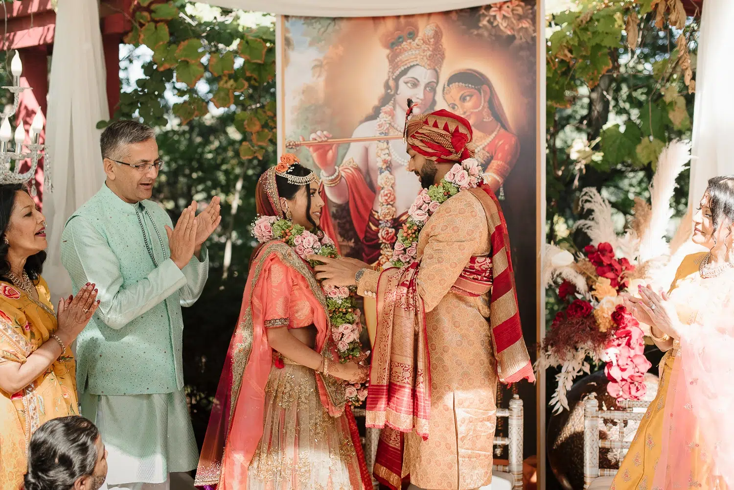 The modern reception that followed the traditional ceremony was a perfect blend of old and new with every detail carefully curated to reflect the couple’s unique taste. Shriya and Alex’s traditional Hindu ceremony and modern reception at the Guild Inn was a beautiful celebration of love, family, and tradition.