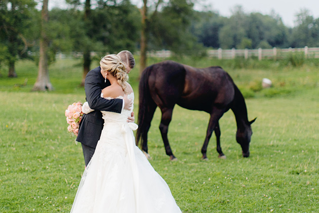 Brace yourself for this one because I know we had to! This glamorous Toronto barn wedding held at a private location just outside of the city will absolutely take your breath away! When our industry friend Rachel Clingen approached us to photograph her very own son’s wedding we were beyond thrilled. We knew it was going to be a day to remember, and of course, we were not disappointed. There are so many gorgeous details in this wedding; from the soft peach and pink blooms, to all of the custom stationary by Paper & Poste, the patisserie-themed lounge area and as you’ll see below, much more. The rustic charm of the barn provided a romantic backdrop for this ultra elegant evening. Caleb and Chelsie’s wedding was the perfect combination of rustic romance and sophisticated glamour. It goes without saying that it was all perfectly orchestrated by the lovely Laura & Co. Caleb and Chelsie were a dream to work with and we wish them a lifetime of happiness together as a new family!