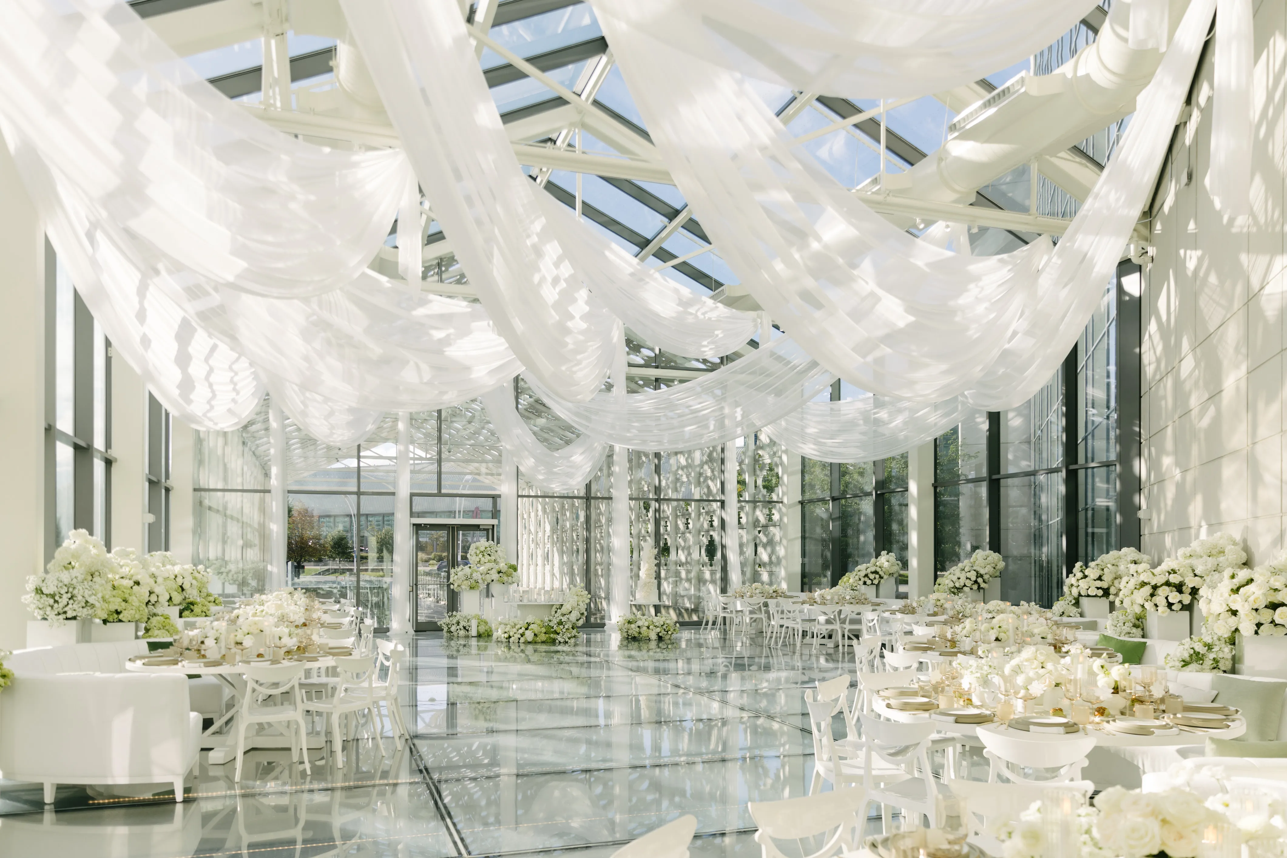 Held at Hotel X Toronto, the ceremony featured a custom 12-foot floral structure and a mirrored aisle lined with glowing candles. As a result, the ceremony perfectly captured the essence of their love and was truly unforgettable.