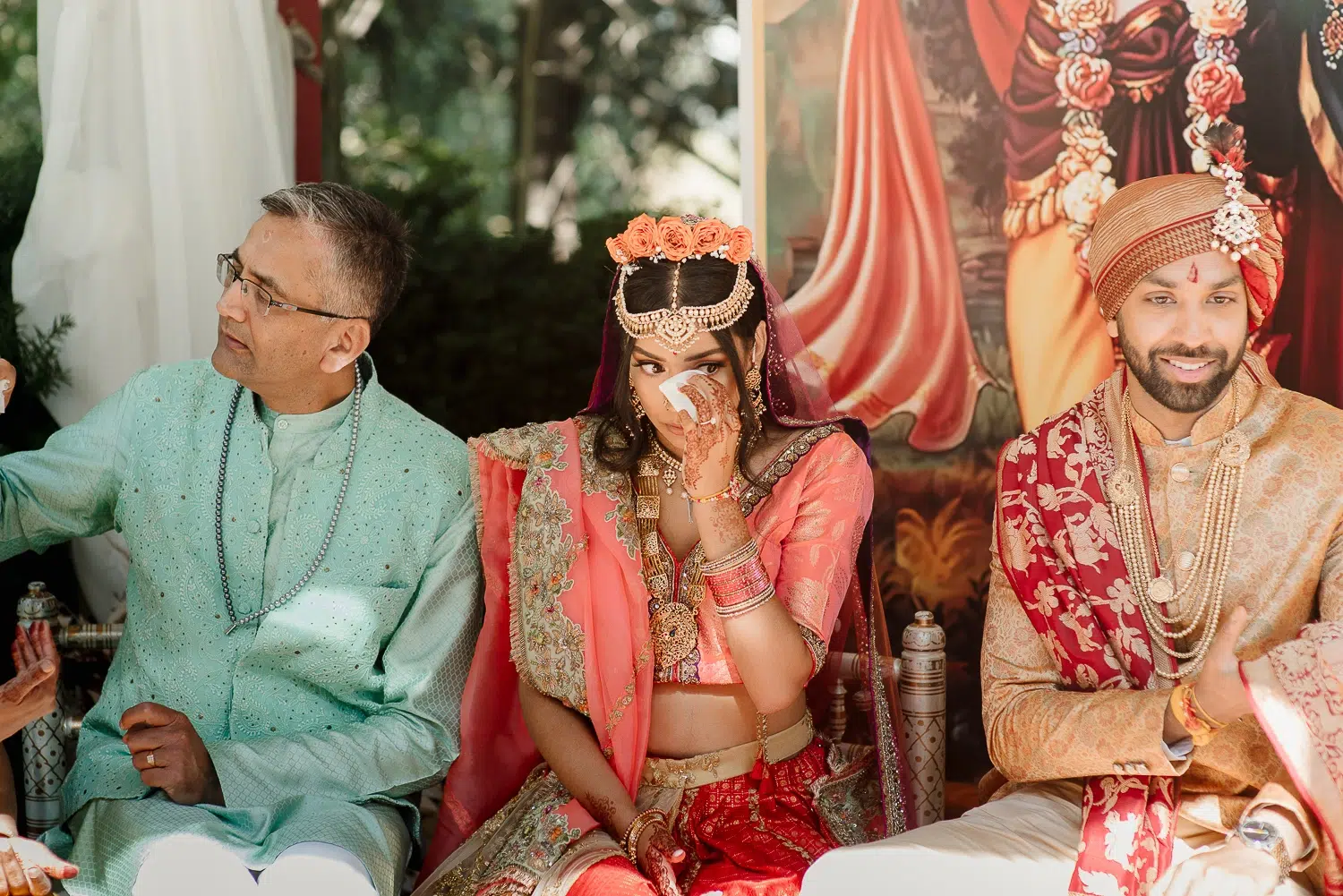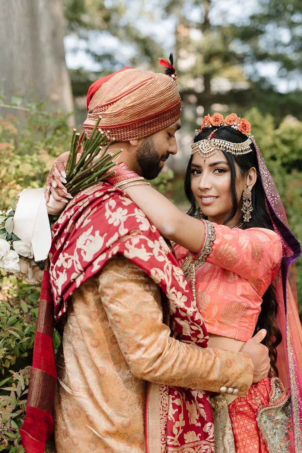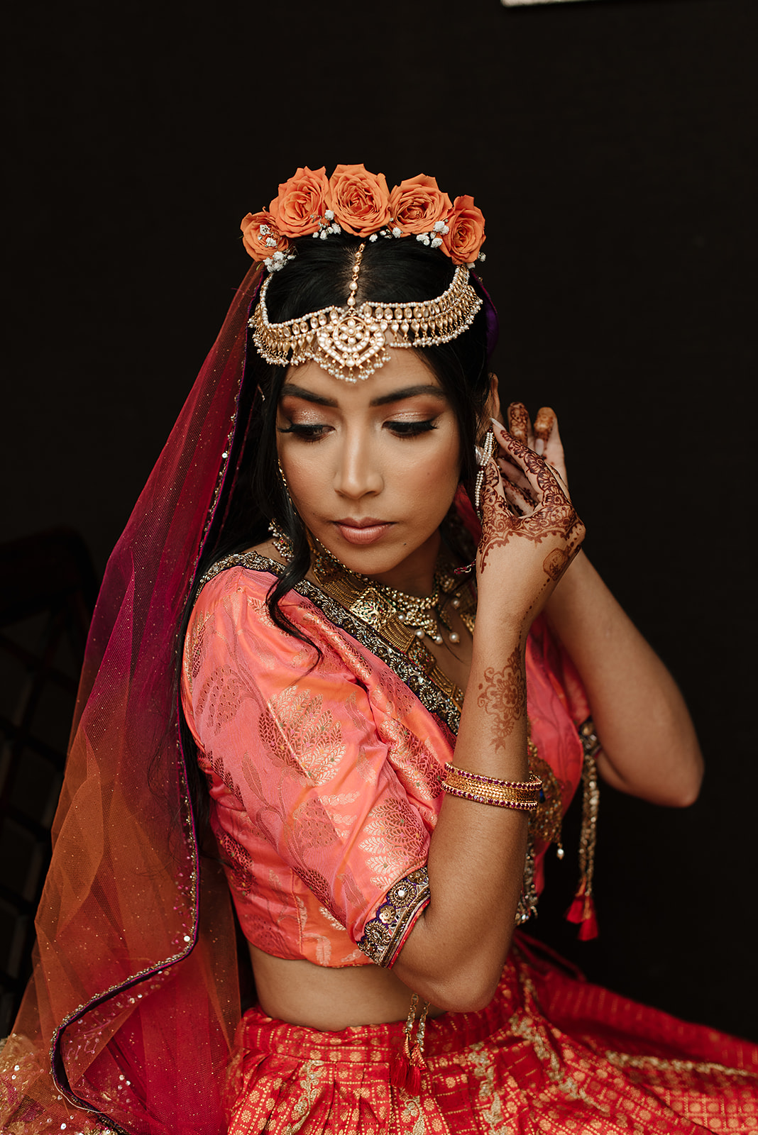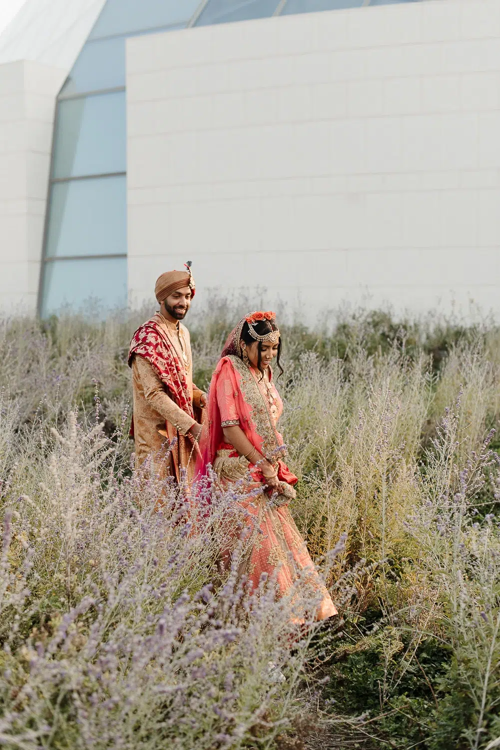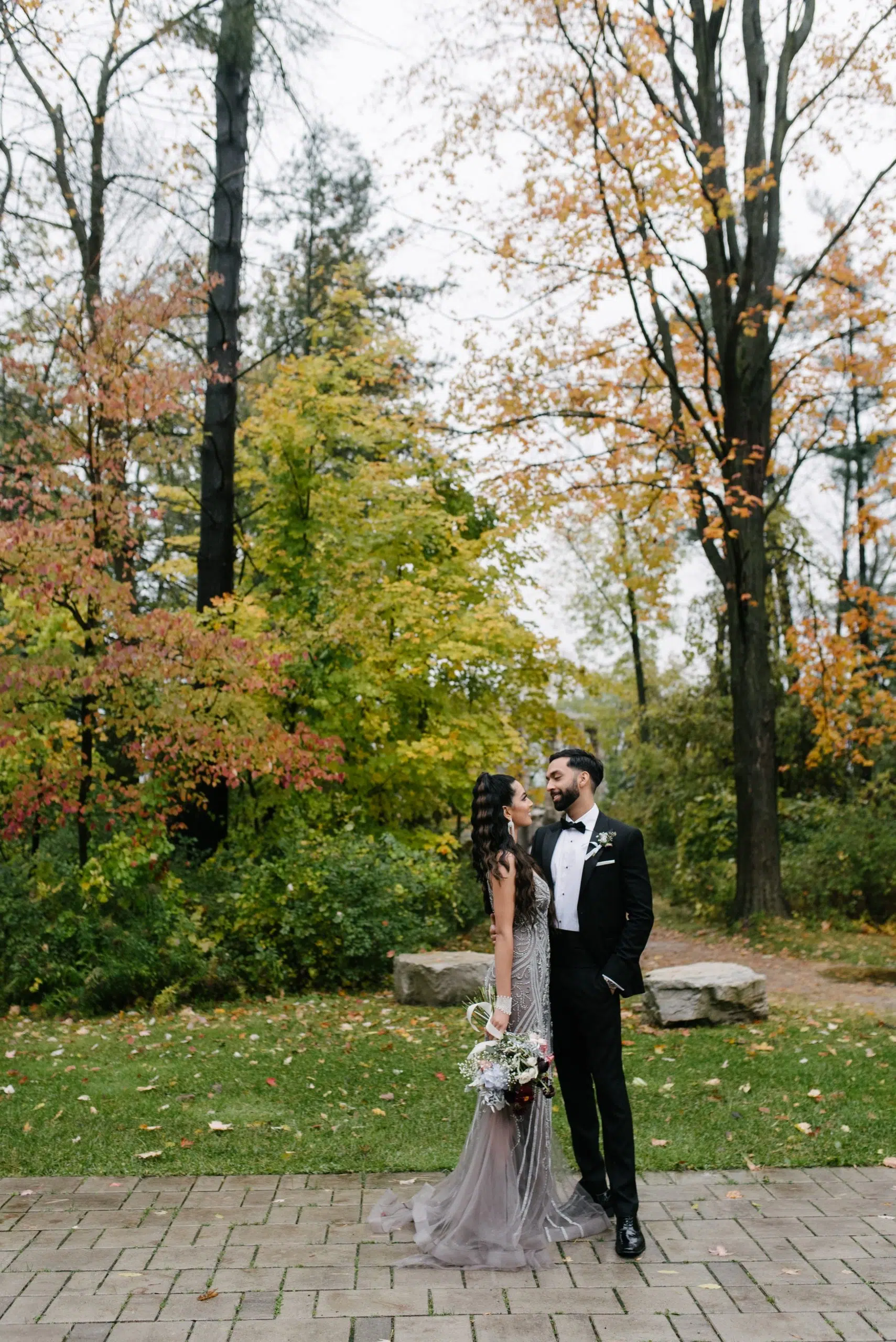 Our main goal was to capture every raw emotion and bright colour of Shriya and Alex’s traditional Hindu wedding ceremony. The bride’s tears of joy and the family’s jubilant celebration made our job a joy to capture such lively emotions. However, it wasn’t just the emotions that were vibrant – the fall colours of the Aga Khan Museum provided a stunning backdrop for the couple’s creative portrait session. As a result, it seemed like even Mother Nature was swept up in the romance! The warm hues of orange, red, and gold created a dreamy atmosphere. As photographers, we strive to capture the essence of every moment, and this ceremony was no exception. In addition to the details of Shriya’s stunning attire, the intricate designs of the Henna was a masterpiece. For this reason, every element on the wedding day felt like a work of art.