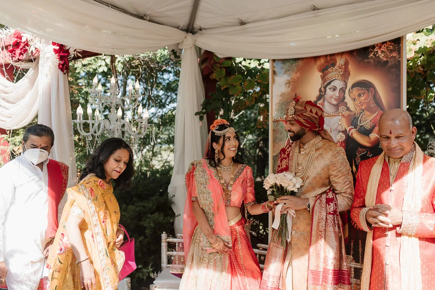 The modern reception that followed the traditional ceremony was a perfect blend of old and new with every detail carefully curated to reflect the couple’s unique taste. Shriya and Alex’s traditional Hindu ceremony and modern reception at the Guild Inn was a beautiful celebration of love, family, and tradition.
