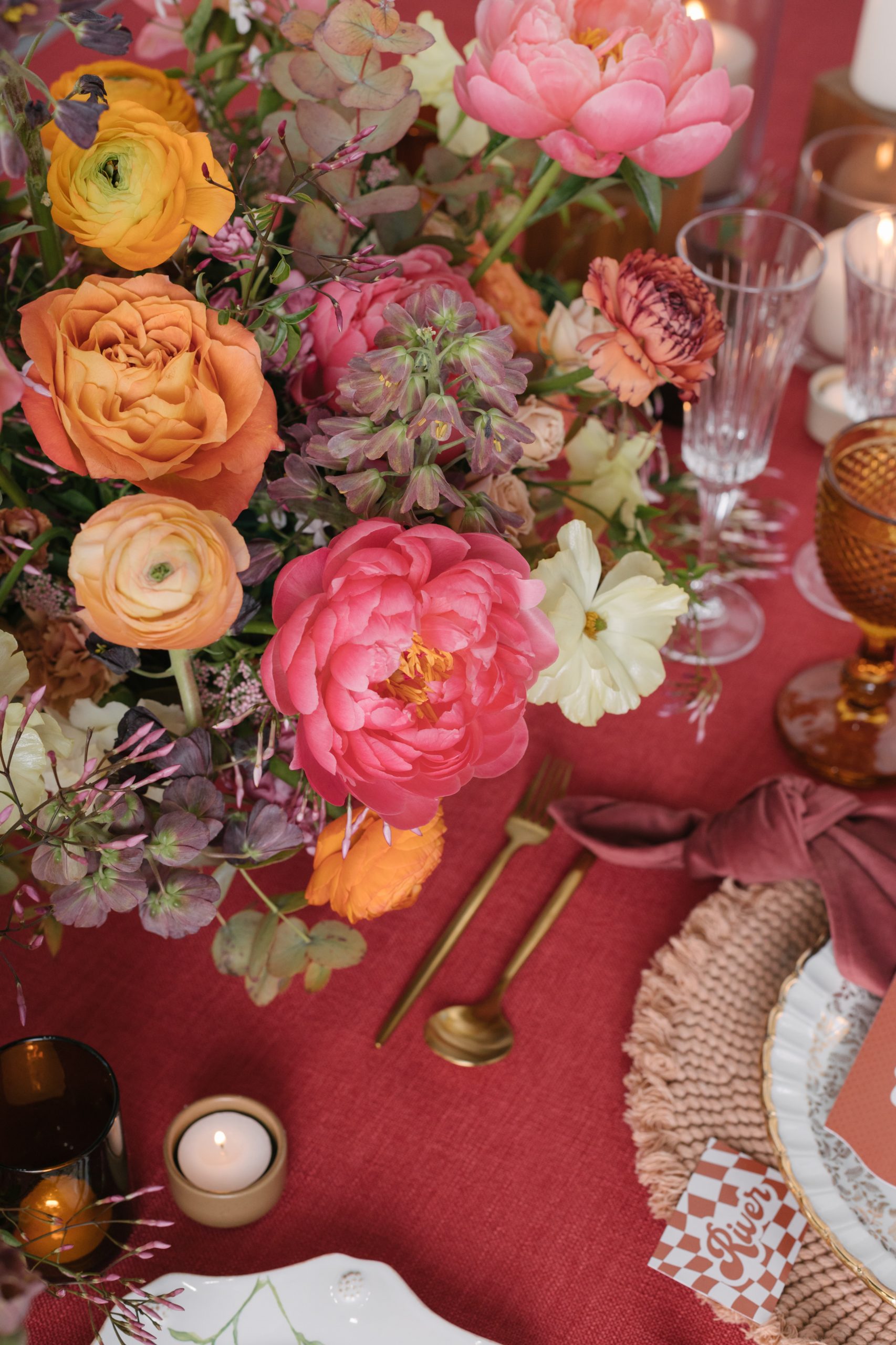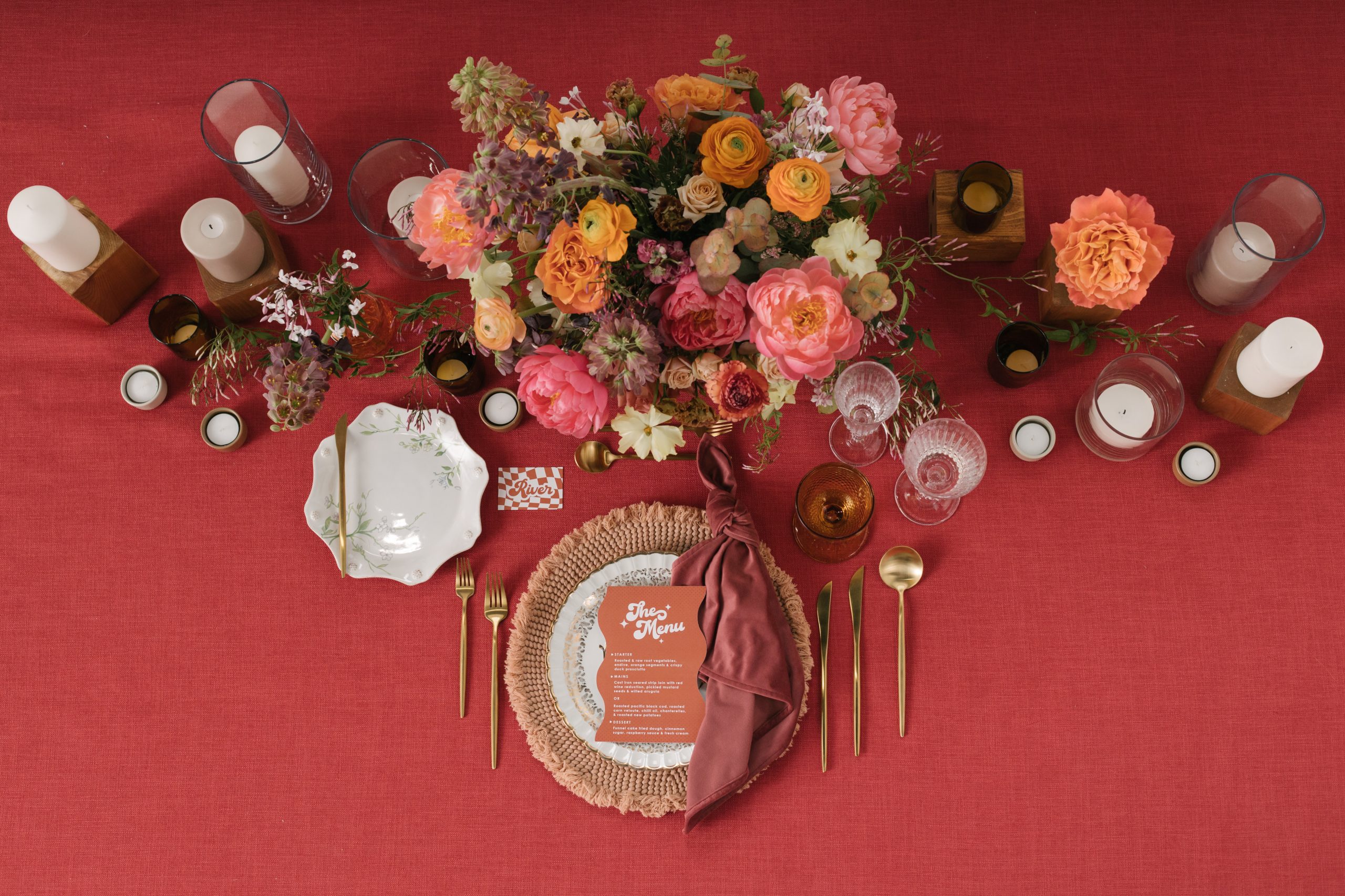 If you long for a nostalgic celebration, the retro romance tablescape will transport you to vibrant eras like the 50s, 60s, or 70s. Moreover, drawing inspiration from those times, this style incorporates charming elements such as retro kitchen items, checkered tablecloths, vintage glassware, and thrifted vases. Furthermore, you can add a touch of uniqueness with vintage posters and thrifted finds for decor. After all, the retro romance style seamlessly combines nostalgia and style, resulting in a tablescape that is timeless and captivating.