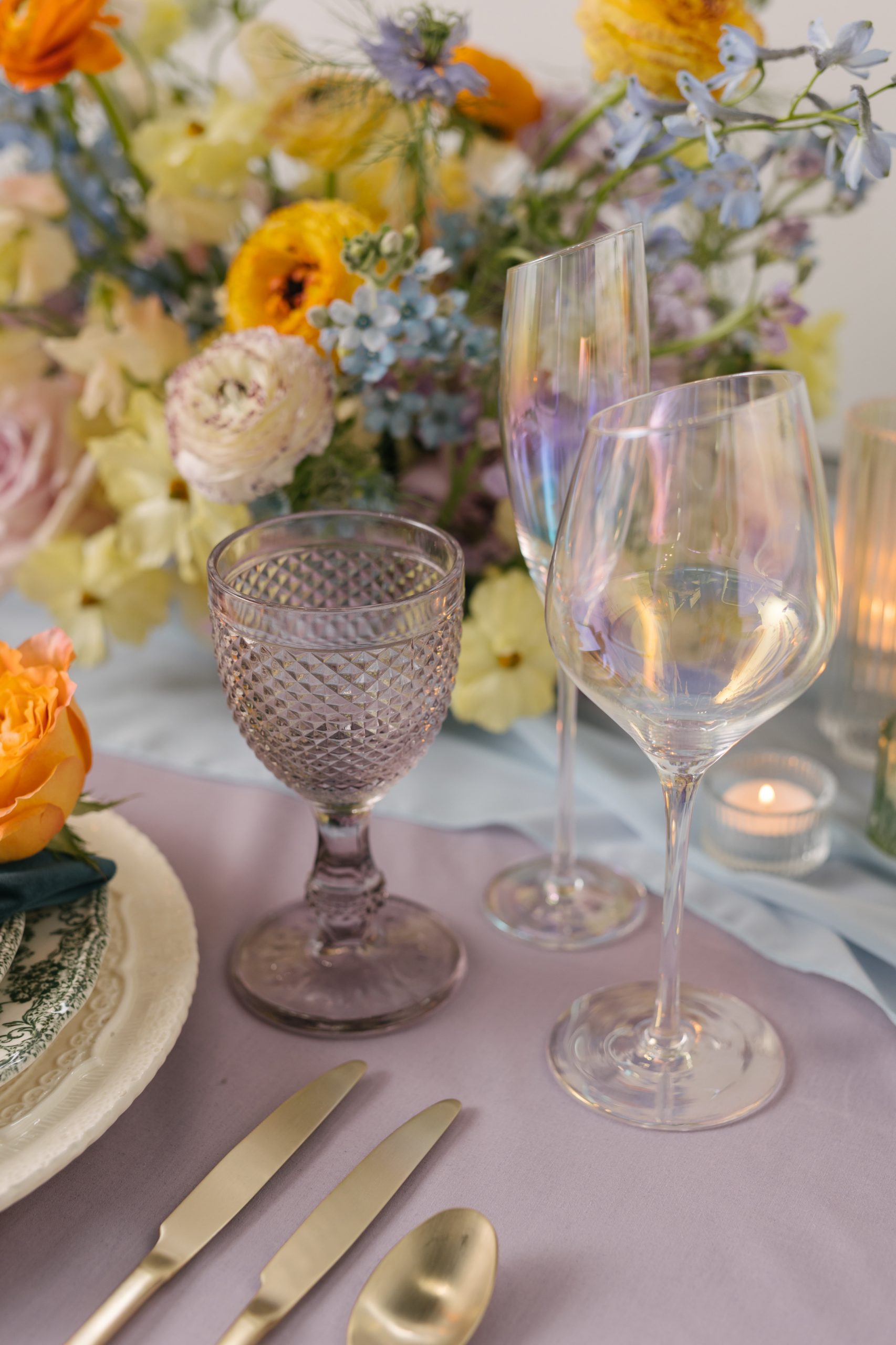 Introducing the whimsical wonder tablescape, a playful and imaginative setting characterized by bold and unexpected combinations of colors, patterns, and textures. After all, this style celebrates the quirky and unconventional, incorporating unique and often handmade decor items like DIY art or vintage pieces. Ultimately, the whimsical style is a celebration of creativity and individuality, resulting in a tablescape that is joyful and full of personality.
