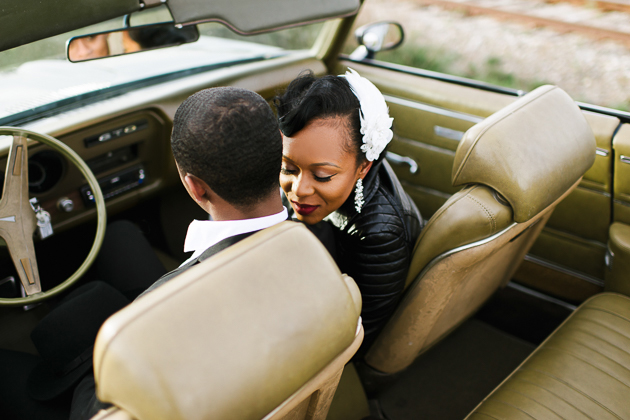 Up the drama and bring your e-shoot game to the next level by including a stunning muscle car into it! Alicia and Phil were dressed to the T and looked amazing in their classic Pontiac GTO. I loved how everything, from their outfits to their photo location, tied in so well together against the setting sun. Not only did it speak to their impeccable taste, it also revealed who they are as a couple.