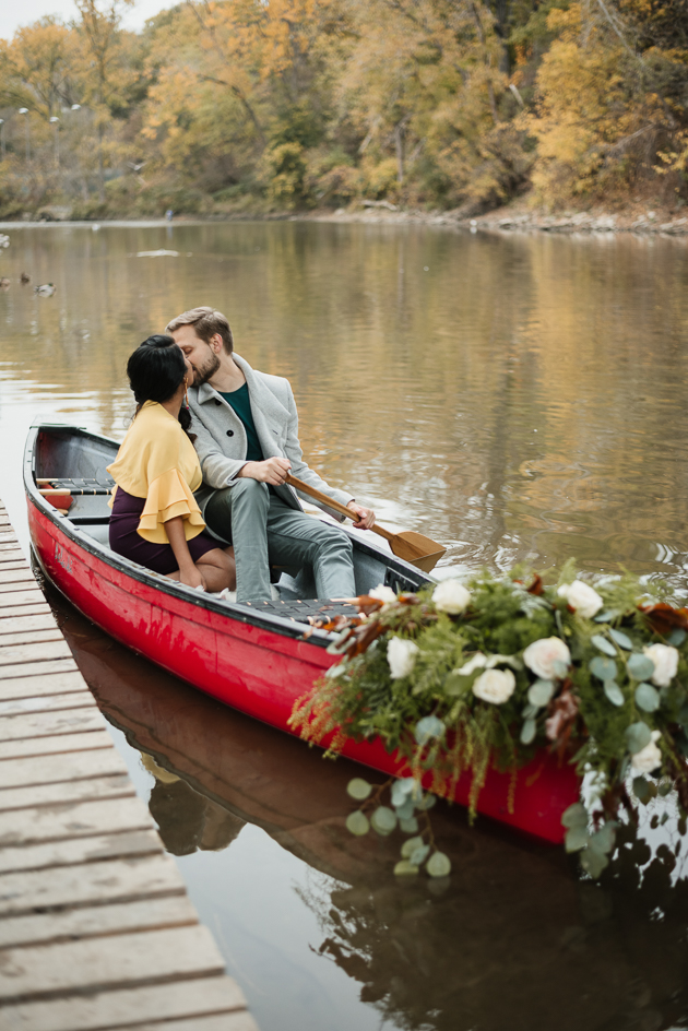 Consider traveling a little to find a location that really showcases the season. Toronto Island is one of my beloved engagement shoot locations as it never looks the same every time I visit it with my couples. It’s small, yet versatile as there are so many photogenic backdrops. From a birch forest to the scenic lakeshore, there are many cool photo opportunities for every taste.