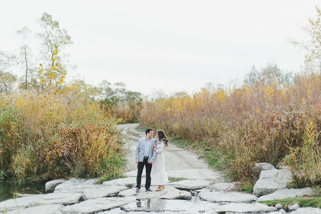 If you’re looking for something unique, I would strongly recommend considering Humber River Park as your engagement photo location. It’s definitely one of the most underrated, yet scenic spots in the city! I love it because it features many great spots including a rocky beach, dreamy woods and a scenic river. Plus, its colourful forest is sure to make your snapshots stand out.