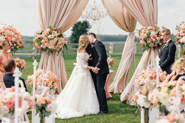 Brace yourself for this one because I know we had to! This glamorous Toronto barn wedding held at a private location just outside of the city will absolutely take your breath away! When our industry friend Rachel Clingen approached us to photograph her very own son’s wedding we were beyond thrilled. We knew it was going to be a day to remember, and of course, we were not disappointed. There are so many gorgeous details in this wedding; from the soft peach and pink blooms, to all of the custom stationary by Paper & Poste, the patisserie-themed lounge area and as you’ll see below, much more. The rustic charm of the barn provided a romantic backdrop for this ultra elegant evening. Caleb and Chelsie’s wedding was the perfect combination of rustic romance and sophisticated glamour. It goes without saying that it was all perfectly orchestrated by the lovely Laura & Co. Caleb and Chelsie were a dream to work with and we wish them a lifetime of happiness together as a new family!